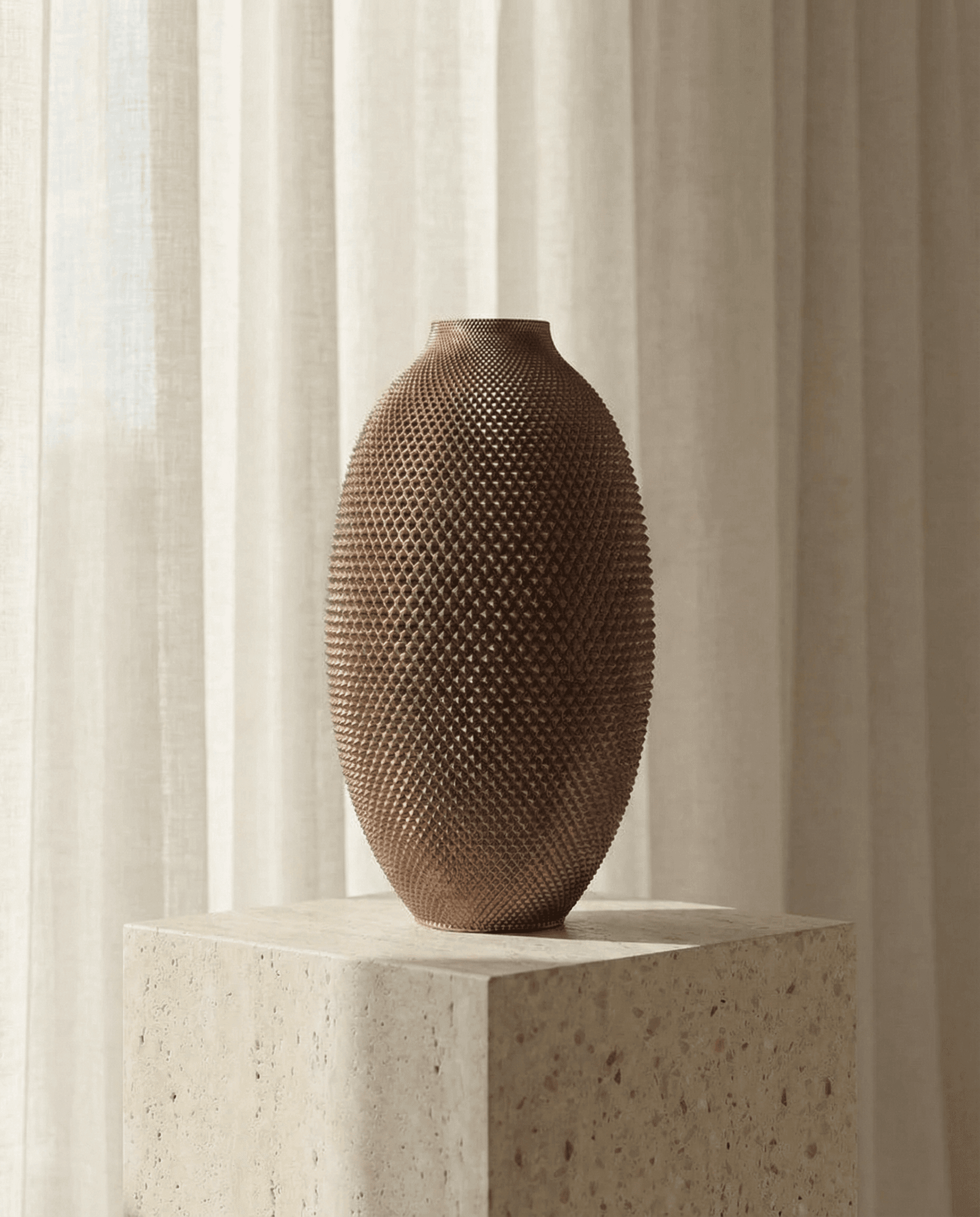Vasevo vases combine cutting-edge 3D printing technology with sustainable materials to create one-of-a-kind pieces. Each vase features intricate designs that would be impossible to achieve through traditional manufacturing methods, while maintaining our commitment to environmental responsibility.